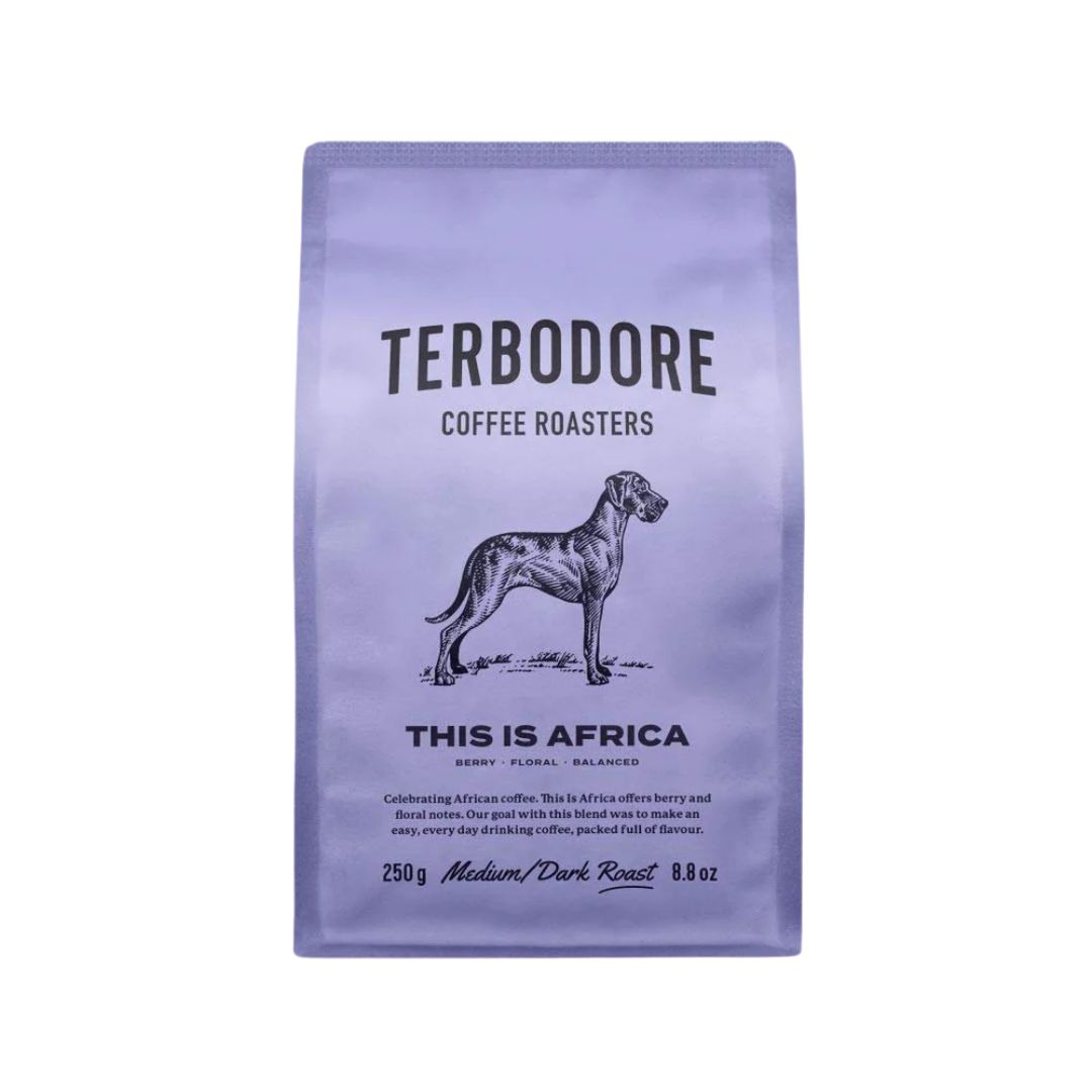 Celebrating African coffee. This is Africa offers berry and floral notes. Our goal with this blend was to make an easy, every day drinking coffee, packed full of flavour.